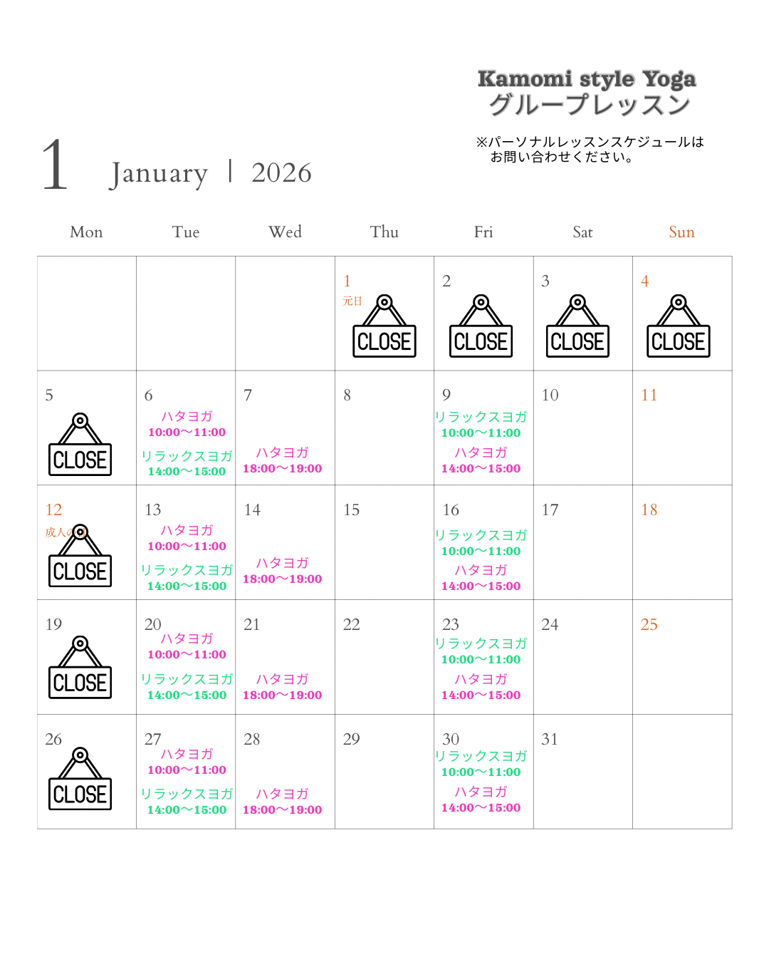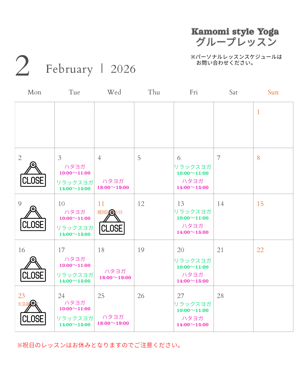 【レッスンのお知らせ】
